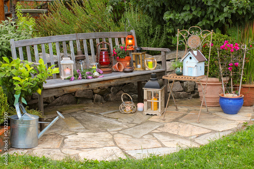 Ein schöner sitzplatz im garten lädt zum verweilen ein.